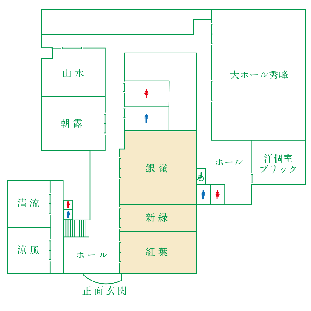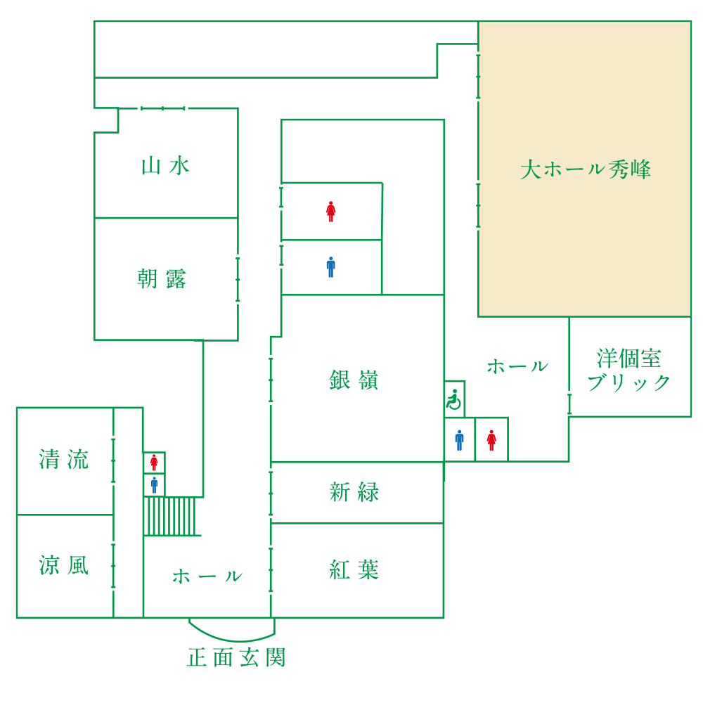写真「秀峰 フルオープン」※ハーフサイズ利用も可能です ホール2Fにも小さめの洋室「清流・涼風」がございます。